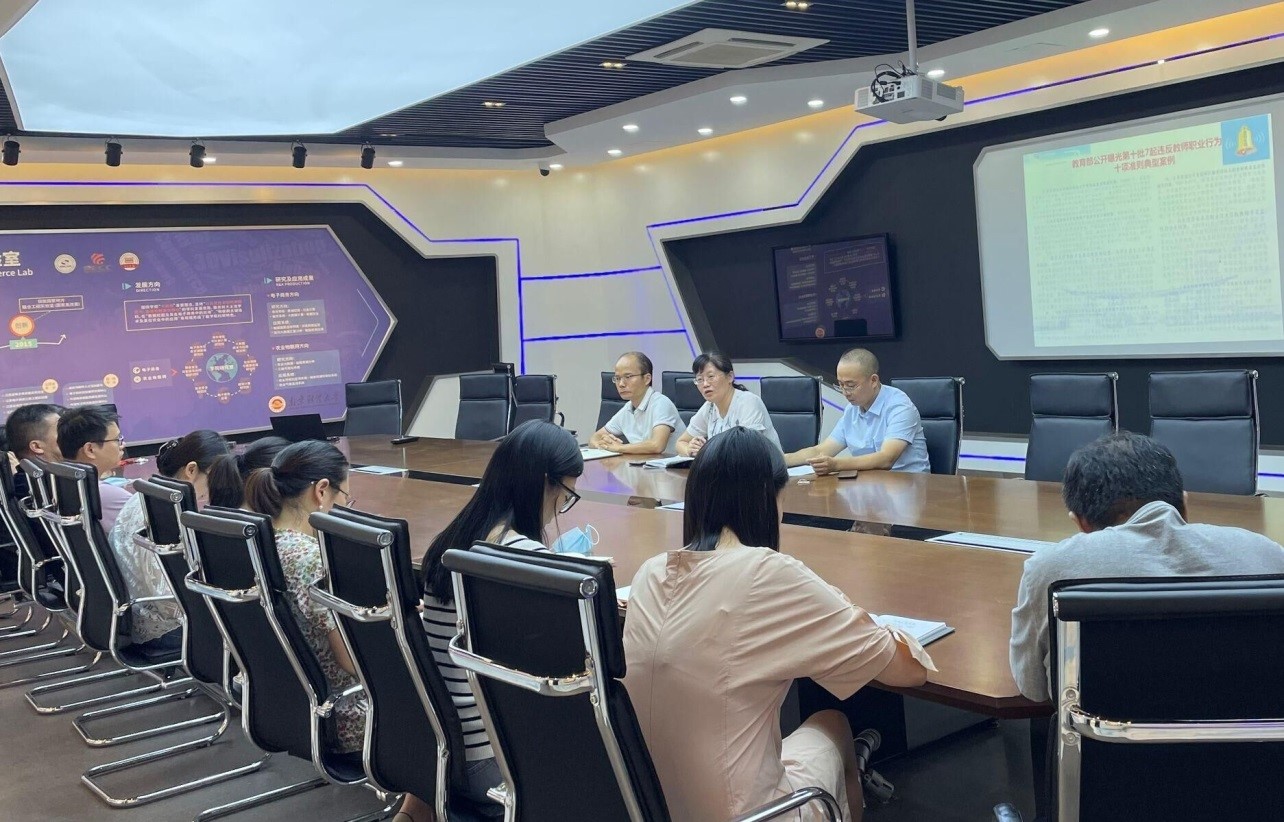 师德手册》等,以教育部公开曝光的违反教师职业行为十项准则典型案例为警示,坚决落实立德树人根本任务,知准则、遵规范、守底线,时刻自重、自省、自警、自励,用高尚师德和渊博的学识当好学生的引路人,以实际行动展现喜迎党的二十大的良好精神风貌。