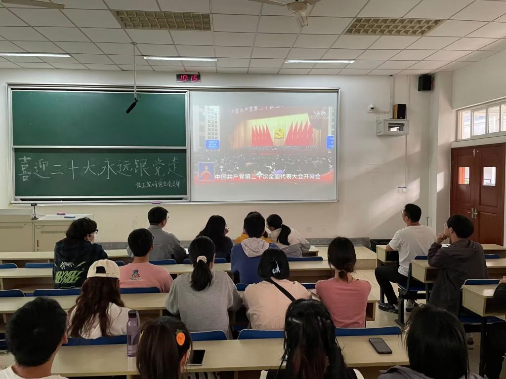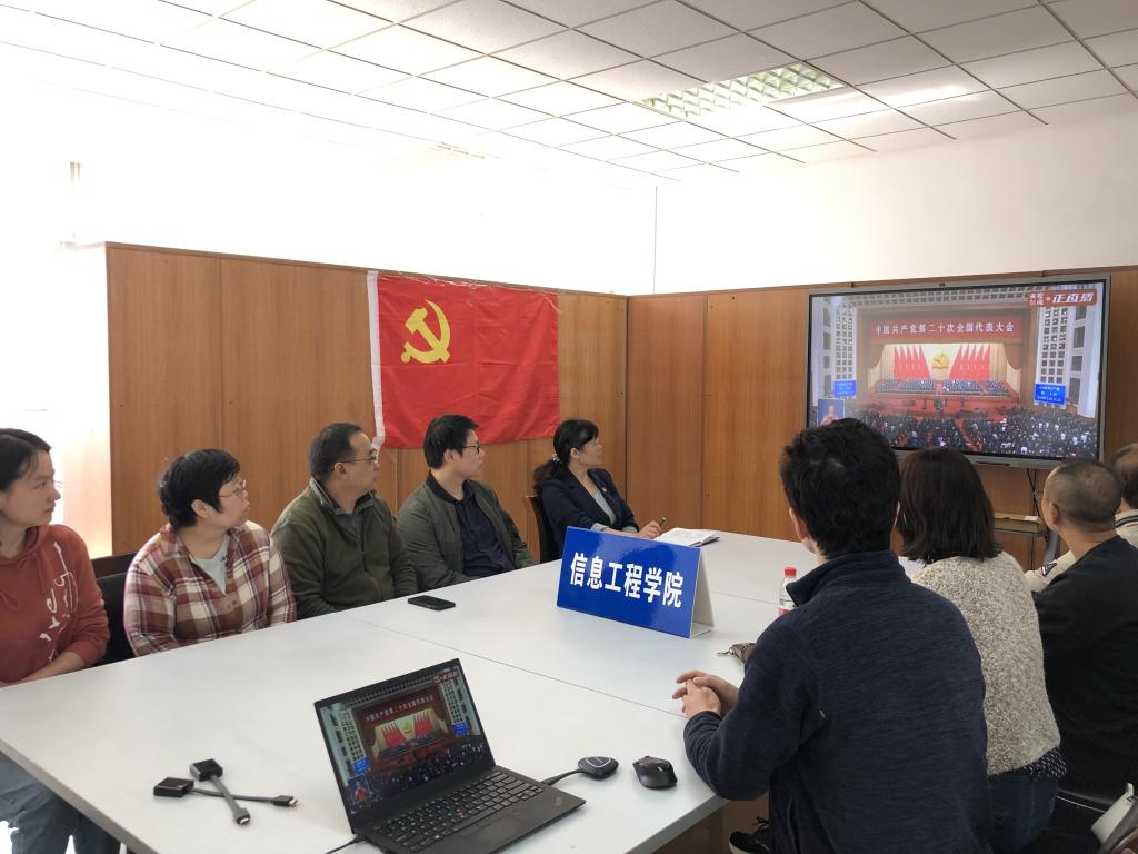 中国共产党第二十次全国代表大会于10月16日在北京隆重召开。为深入学习贯彻党的二十大精神,信息工程学院全体师生以线上、线下相结合的方式集中收看收听党的二十大召开盛况。老师们纷纷表示,将认真学习领会党的二十大精神,在全面建设社会主义现代化国家的新征程中勇担培育时代新人的历史使命;同学们也表示将努力学习专业技能,毕业后到祖国和人民最需要的地方去建功立业。