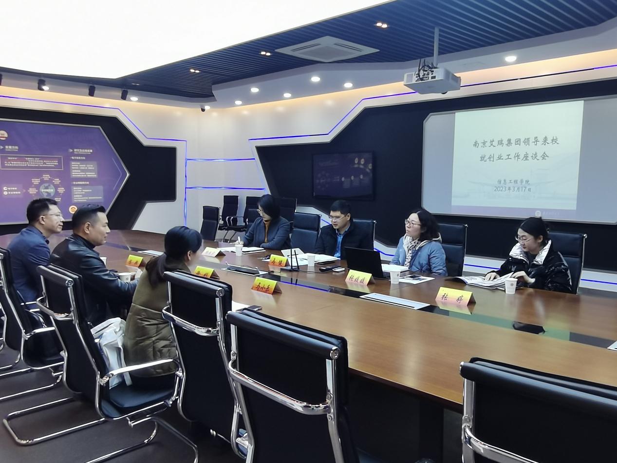 为进一步落实“访企拓岗促就业”专项行动要求,深化校企合作内涵,3月17日上午,应信息工程学院之邀,南京艾瑞集团总经理徐彬、校企合作总监陈韩等一行来我校交流合作事宜。信息工程学院党委副书记马健、学工办主任张媛媛和高年级辅导员张婷、杨佳宁参加座谈交流。
