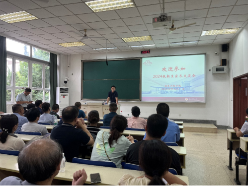 在德业楼101教室召开2024级新生家长见面会。院党委书记张阳军、院长黄健、副院长李树青、学工办主任张媛媛、辅导员杨佳宁以及全体2024级新生家长参加会议,会议由e路领航辅导员工作室主办,院党委副书记马健主持。
