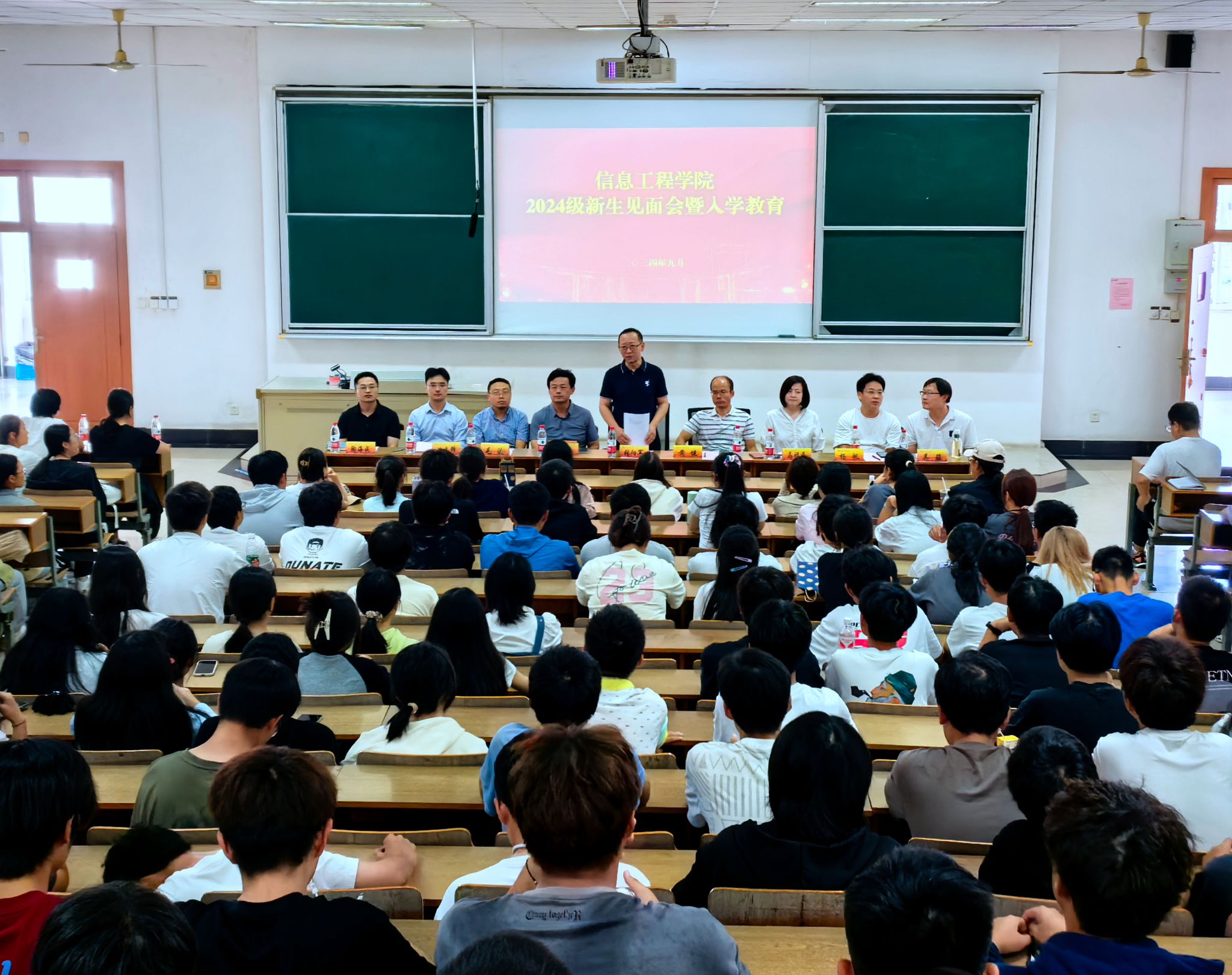 会议伊始,黄健院长致欢迎辞。他代表学院热烈欢迎2024级新同学加入信息工程学院大家庭,向大家全面介绍了学院的专业设置、学科建设、师资建设等方面情况,并结合自身经历勉励新生们大学四年期间锻炼意志品质、学会独立思考、学会自我管理,立鸿鹄志,做奋斗者。