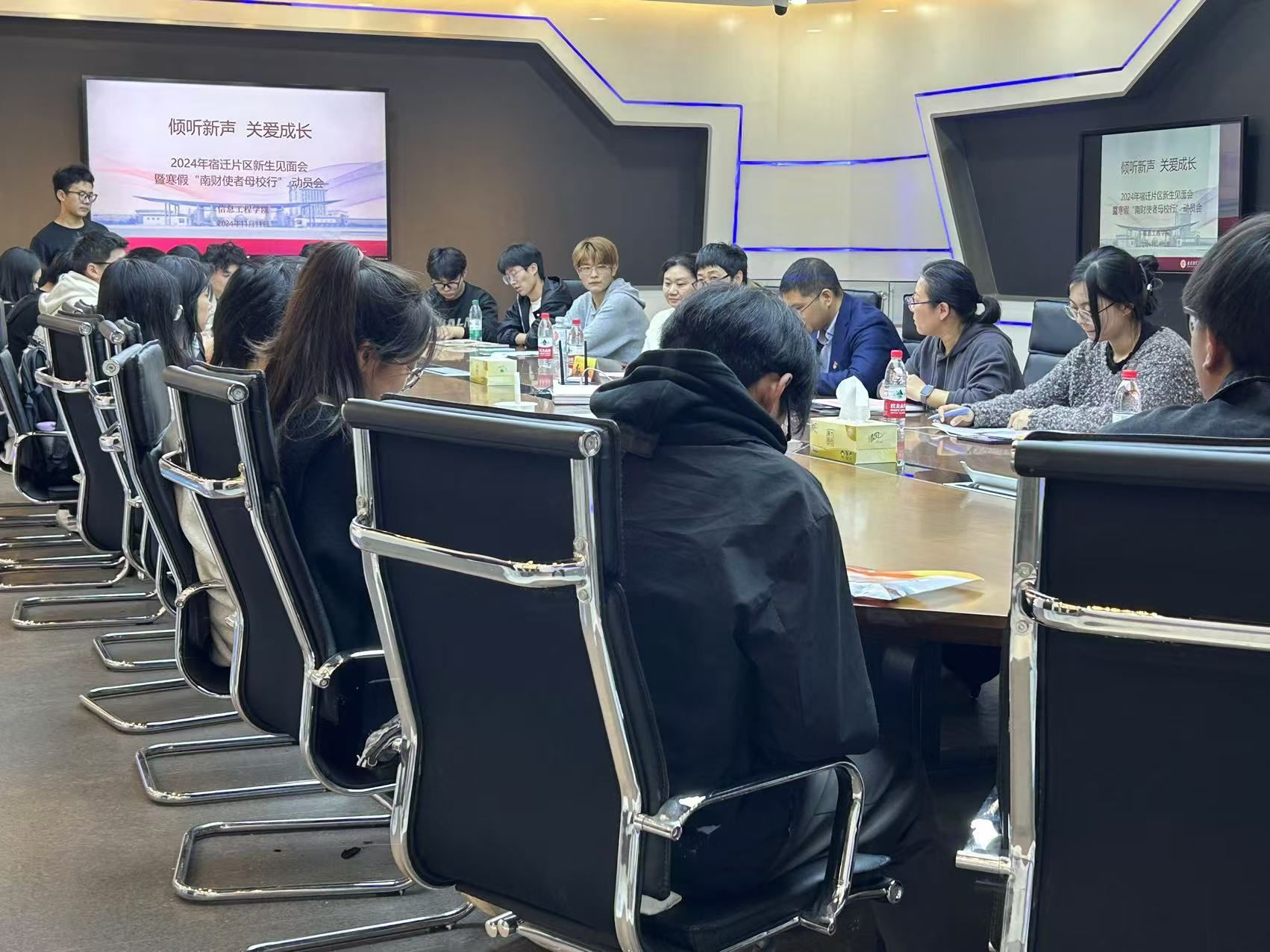 的大家庭表示欢迎与祝贺,深情回忆当时在宿迁沭阳地区招生咨询时与考生和家长交流的场景。随后张媛媛老师汇报了近三年来我校在宿迁、福建等地开展的招生宣传工作、优质生源基地维护以及取得的成绩,鼓励同学们借鉴在校生先进经验,做好南财与高中母校联系与衔接的桥梁,为学校争取更多优秀生源。
