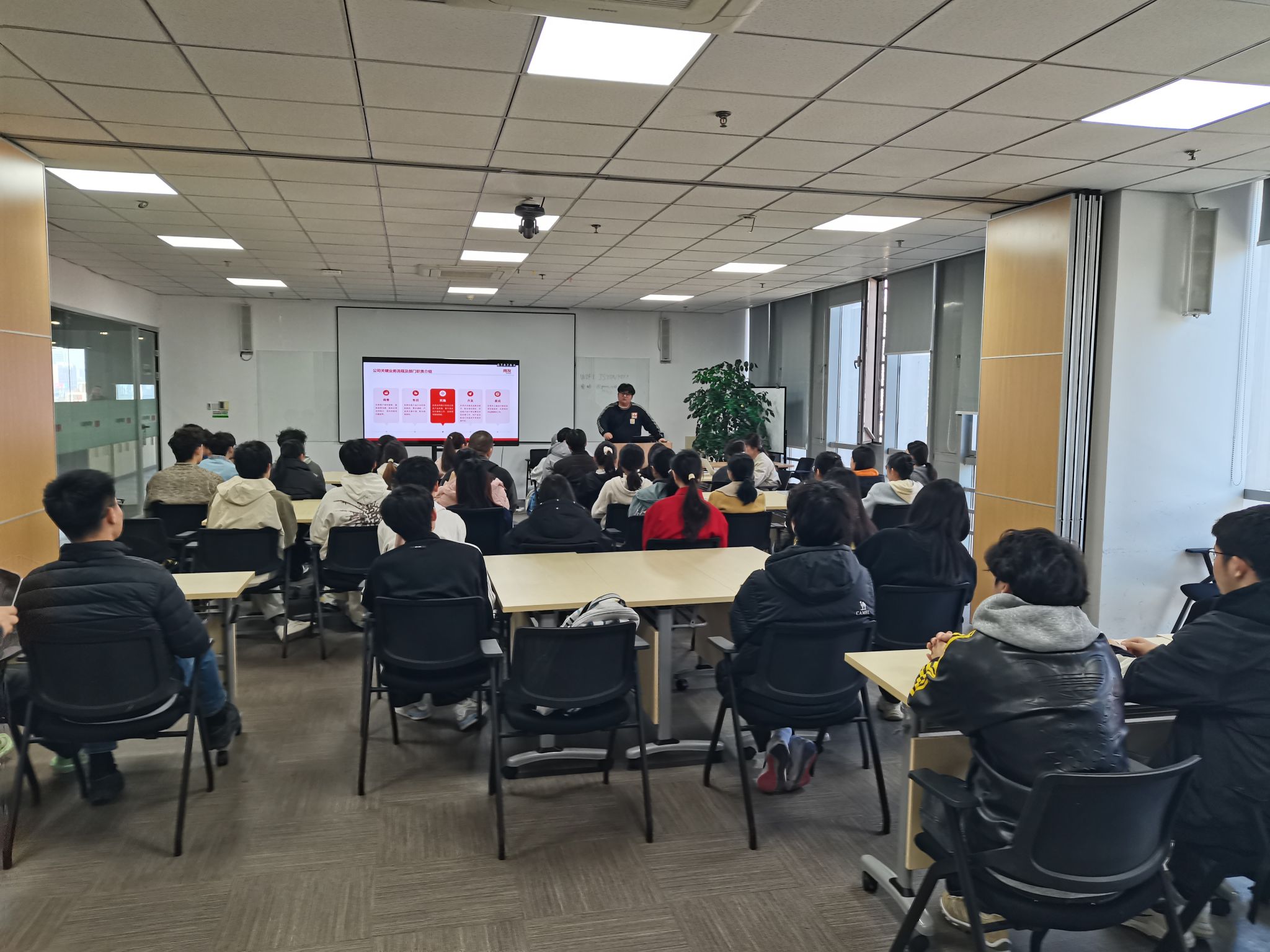 座谈后,企业各部门负责人现场组织实习生招聘面试,与学生进行一对一深入交流,全面考察学生的专业技能、综合素养与岗位适配度,现场与多名同学达成初步实习意向,实现了校企人才精准对接。