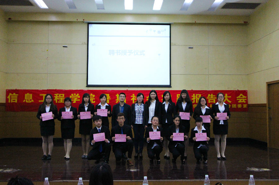 2015年10月13日晚上,信息工程学院在仙林校区管理学科楼报告厅举办院第十三届学生会、分团委成立大会,院党委副书记潘雪峰、分团委书记张媛媛等老师出席此次大会。