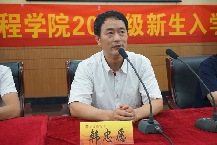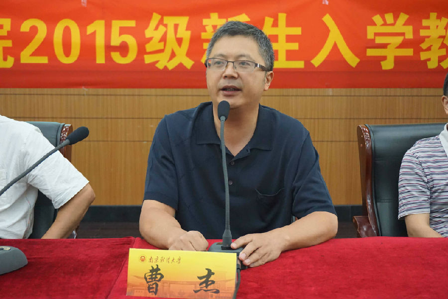 为使大一新生尽快适应大学生活,以全新的姿态投入到大学校园,步入人生新阶段,信息工程学院于9月9日下午在仙林校区管理学科楼报告厅举行了信息工程学院2015级新生入学教育。出席本次大会的领导有院党委书记韩忠愿,院长曹杰,副院长许建平,院党委副书记潘雪峰,副院长宣恒农,计算机科学与技术系主任马福民,软件工程系主任韩伟、信息管理与信息系统系主任李树青、分团委书记张媛媛、新生辅导员张婷等领导和老师,会议由院党委副书记潘雪峰老师主持。