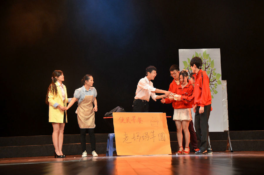 此次大赛中,禁漫 演出的原创话剧作品《回头》给人留下深刻印象。《回头》演绎的是生活中的一幕小细节,表现了一个贫困家庭母亲的坚强,一个贫寒学子由无知成长为孝顺懂事的心酸历程。该剧由禁漫 2013级、2014级同学独立完成,感人的剧情以及演员们的深情演出令评委赞叹不已。
