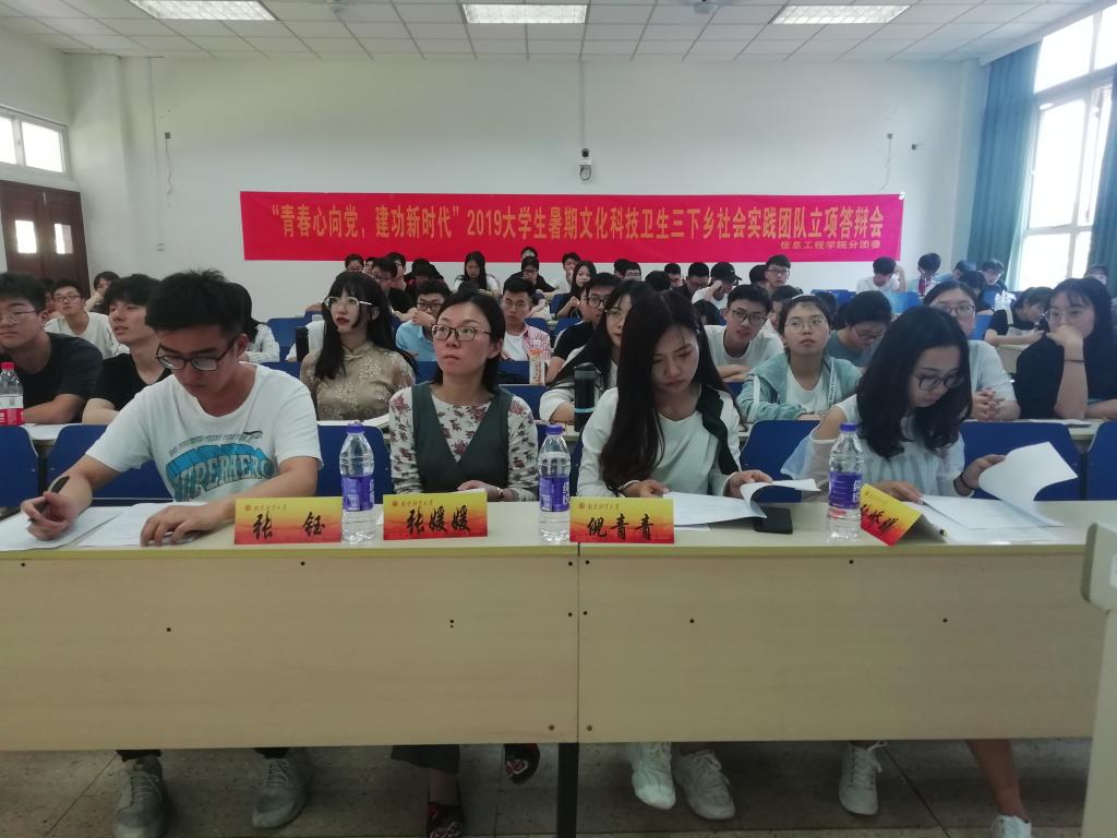 “青春心向党,建功新时代”2019大学生暑期文化科技卫生三下乡社会实践团队立项答会圆满结束,希望各团队积极采纳评委老师的意见,及时进行改进,期待同学们暑期社会实践工作都能顺利进行并且取得好成绩!