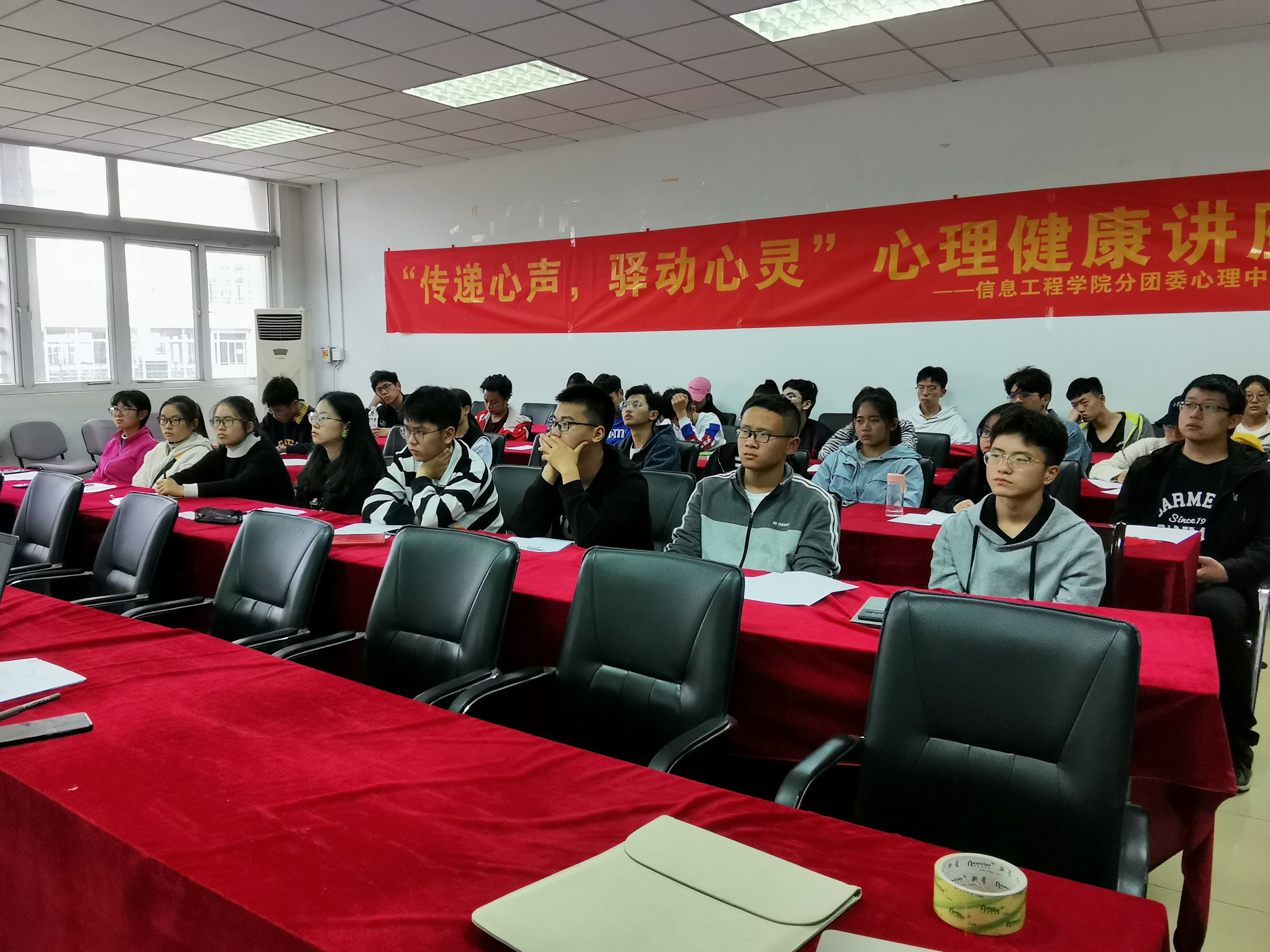 11月6日下午,信息工程学院分团委在我校仙林校区德业楼406教室举行素养公开课——“传递心声,驿动心灵”心理健康讲座。该讲座由学院心理辅导员、三级心理咨询师倪青青主讲,学院各团支部心理委员以及其他对心理健康知识感兴趣的同学参加了本次活动。