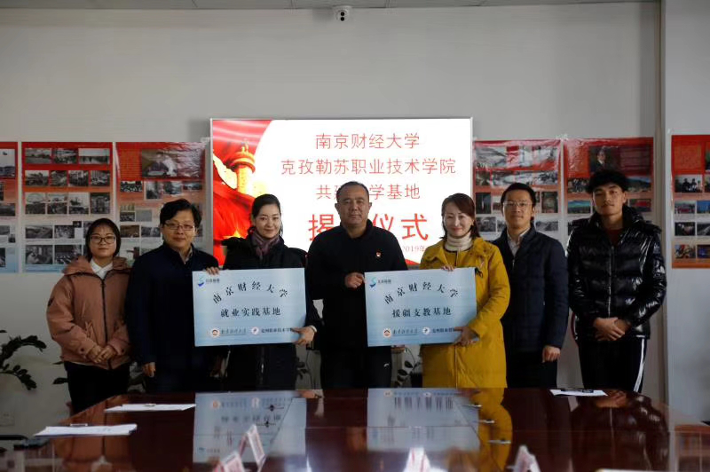 援疆支教基地”签约授牌仪式在克孜勒苏职业技术学院图书馆举行。克孜勒苏职业技术学院领导丁莉东、阿布都卡德尔、侯志东,我校代表信息工程学院党委副书记吴丹和公共管理学院党委副书记张荣霞、副院长李永乐出席本次活动。