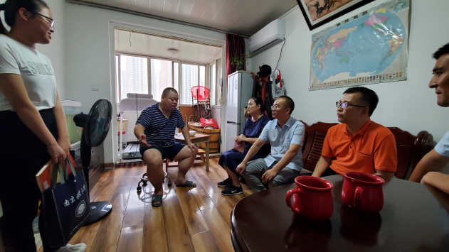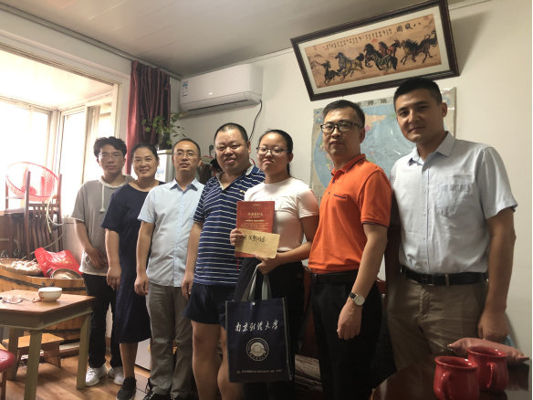 信息工程学院党委副书记袁军、青年教师刘予飞、新生辅导员孙脉,软件工程专业校外专业指导老师张贵舟一行,来到南京市鼓楼区恒盛嘉园小区,看望2020级贫困新生李梦雨同学,并送上新生大礼包和贫困资助金。