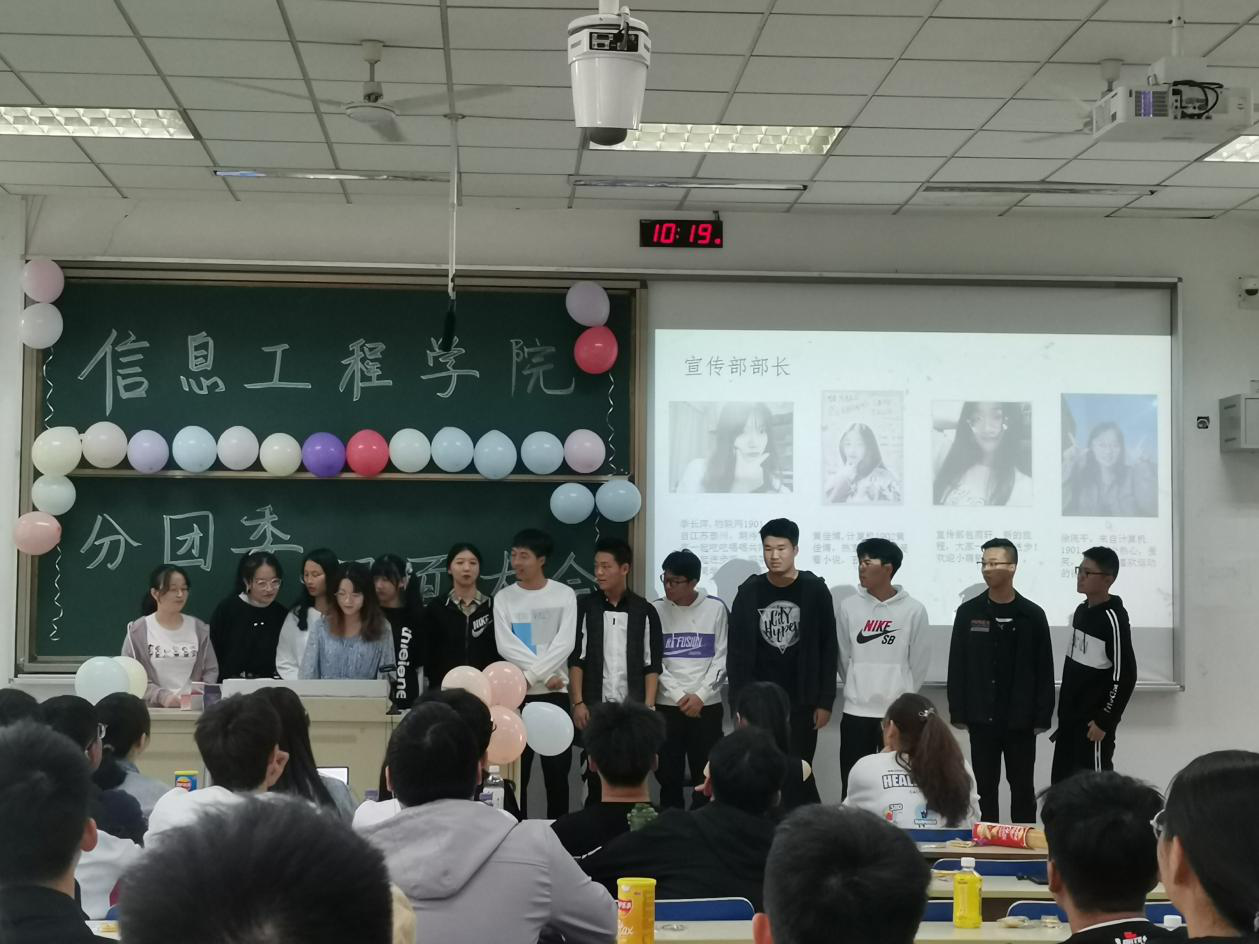 信息工程学院第十八届分团委见面大会于德业楼101顺利召开。参会的有分团委副书记夏静,虞海玥,分团委各部门部长及部员。主持人为心理中心部张宇杰。
