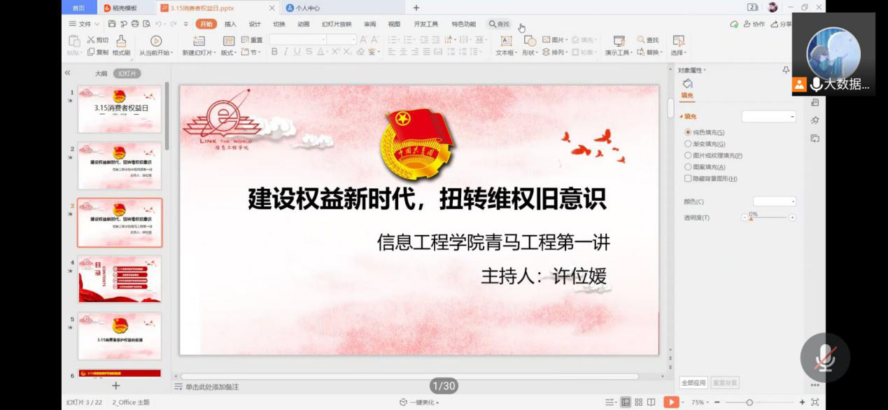 2021年3月12日,信息工程学院就即将到来的“消费者权益保护日”以“建设权益新时代,扭转维权旧意识”为主题通过腾讯会议开展了禁漫