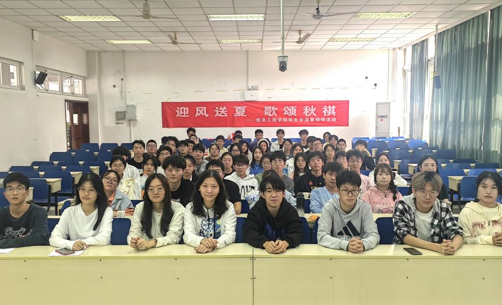 为加强学生会各中心成员之间的了解,培养各中心团队协作能力,发扬学生组织团结向上的精神,增强各中心团队凝聚力,10月14日,信息工程学院在德业楼101举办了第二十一届“迎风送夏,歌颂秋祺”温馨咖啡联谊活动。