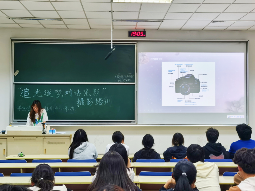 讲座结尾,主持人陆怀湘向同学们介绍即将举办的摄影大赛,鼓励同学们积极参与,展示自己的精彩作品和摄影能力。