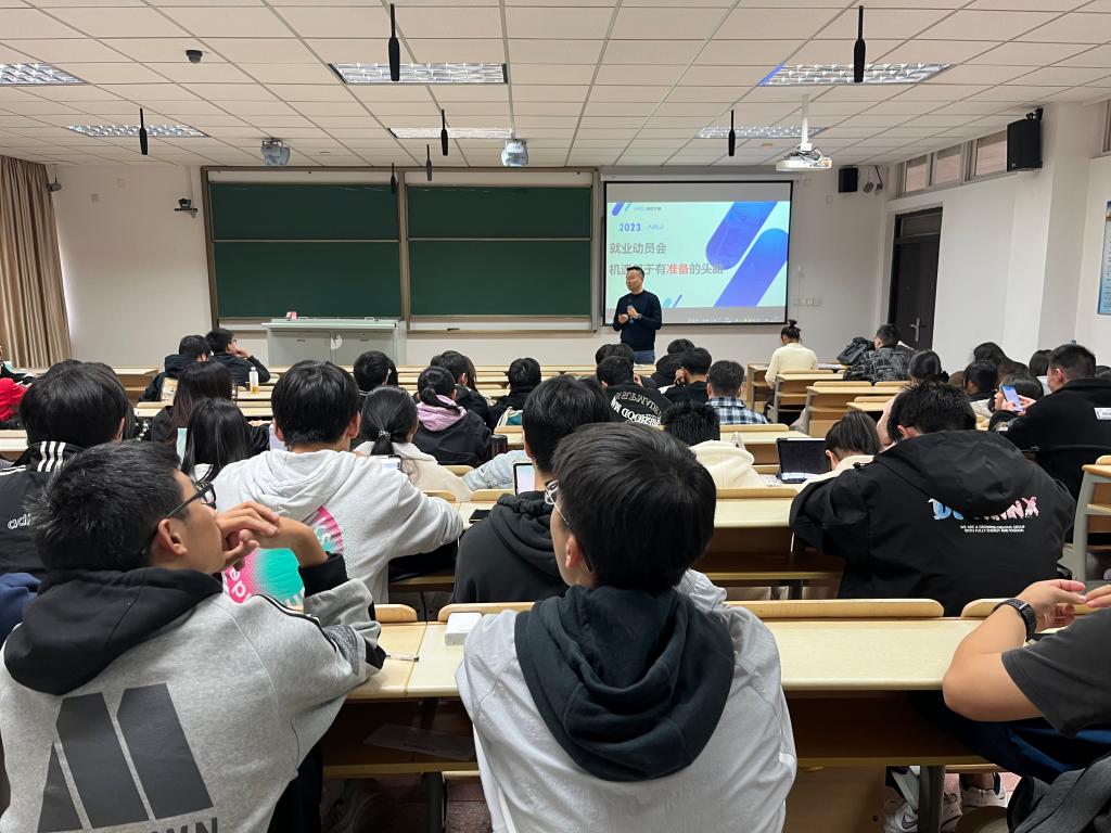校友、南京艾瑞集团负责人徐彬在我校仙林校区德正楼209教室作了《机会属于有准备的头脑》IT行业分析专题讲座,本次讲座由学工办主任、辅导员张媛媛老师主持,软件2101班与物联网2101班全体学生参加。