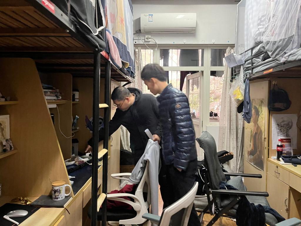本次检查主要包括查看学生宿舍是否有私拉电线、违规使用大功率电器、学生离开宿舍后各类插头开关有无关闭以及宿舍卫生等问题。在检查过程中,大部分宿舍整体卫生情况较好,但有个别宿舍还存在一定安全隐患,比如:小寝室门上挂有钥匙人却不在宿舍,笔记本电脑随意丢放在桌面,电线裸露在外的接线板仍在使用以及部分插座没有关闭等,马健副书记在检查过程中逐一进行了指导并提出解决措施,希望检查人员以及宿舍同学们高度重视安全问题,防患于未然,消除可能引发宿舍危险的各种安全隐患。辅导员老师表示将第一时间组织学生进行整改并召开主题班会加强对学生安全意识的教育。