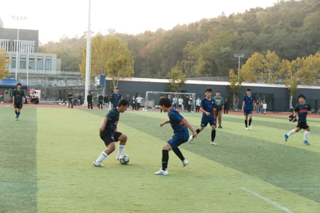 在这场吹响决赛冲锋号的关键比赛中,信息工程学院足球队的苗嘉琦表现尤为突出。在第14分钟,他前插到对方禁区拿球回做,后跟上的9号黄茂珈拿球毫不犹豫,抬脚远射皮球直挂死角兜射进球,信工以1:0的比分领先,为球队首开纪录,瞬间点燃了全场的气氛。