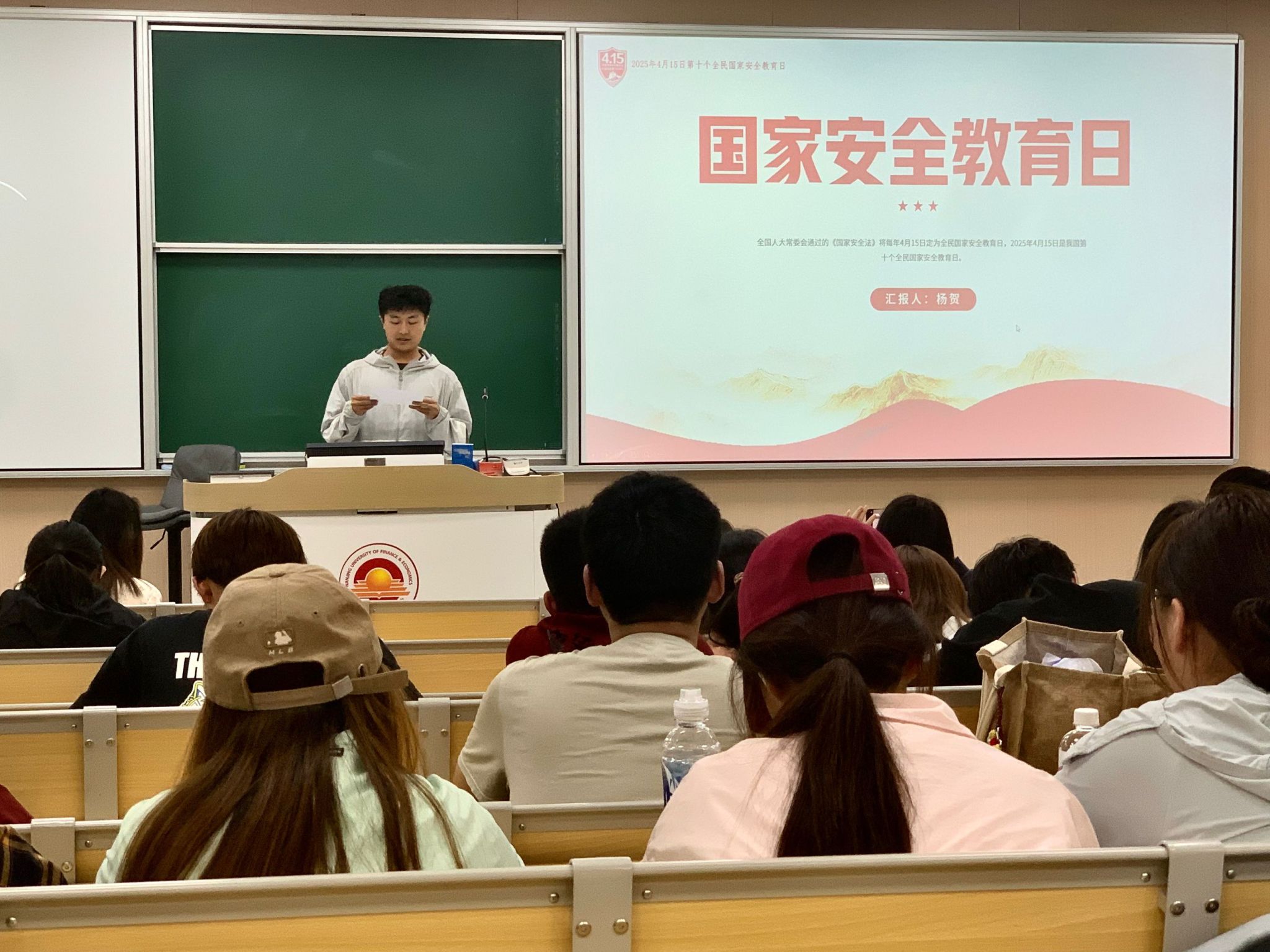 活动伊始,主持人杨贺组织在场同学观看了一段国家安全教育主题的视频,视频内容生动展现了我国在国家安全领域的卓越成就与现实挑战,这让同学们不仅对国家安全的广度和深度有了直观感受,更深刻认识到国家安全与每个人息息相关。