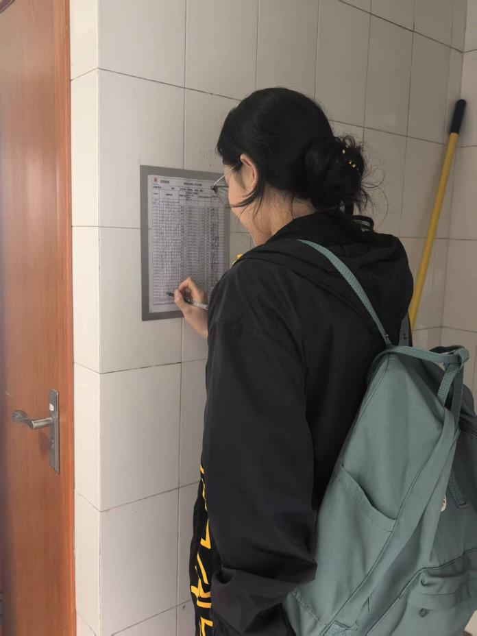 体验之余,我们也做了一个简短的采访,大概了解了保洁阿姨一天的工作流程。凌晨五点多,城市尚在沉睡,保洁阿姨已迎着晨光出门,搭乘公交奔赴校园。六点多准时到岗,开启一天六小时的辛勤劳作。十点半简单用餐后,十二点又马不停蹄地投入教室清洁,擦拭桌椅、讲台、黑板,不放过任何一处角落,为师生营造整洁的学习环境。一点半稍作休息,三点多结束一天的工作,周而复始,默默付出。被问及工作中的困难,阿姨笑言并无太多艰辛,这份豁达令人动容。
