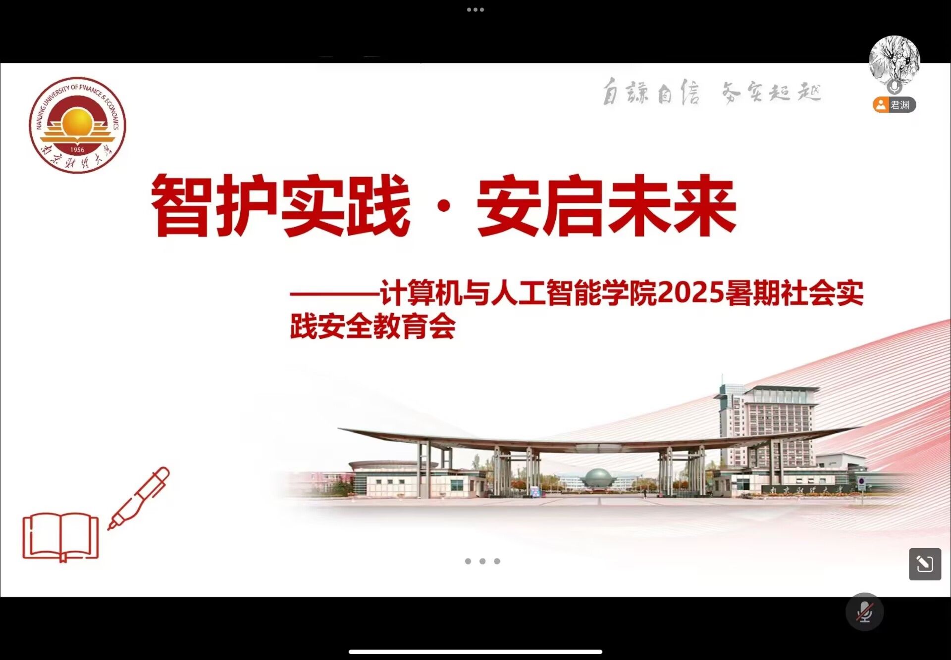 于7月3日组织召开"智护实践・安启未来"暑期社会实践安全教育线上专题培训会。学院党委副书记马健、分团委书记郭秀芳出席会议并讲话,各实践团队负责人代表参加会议。