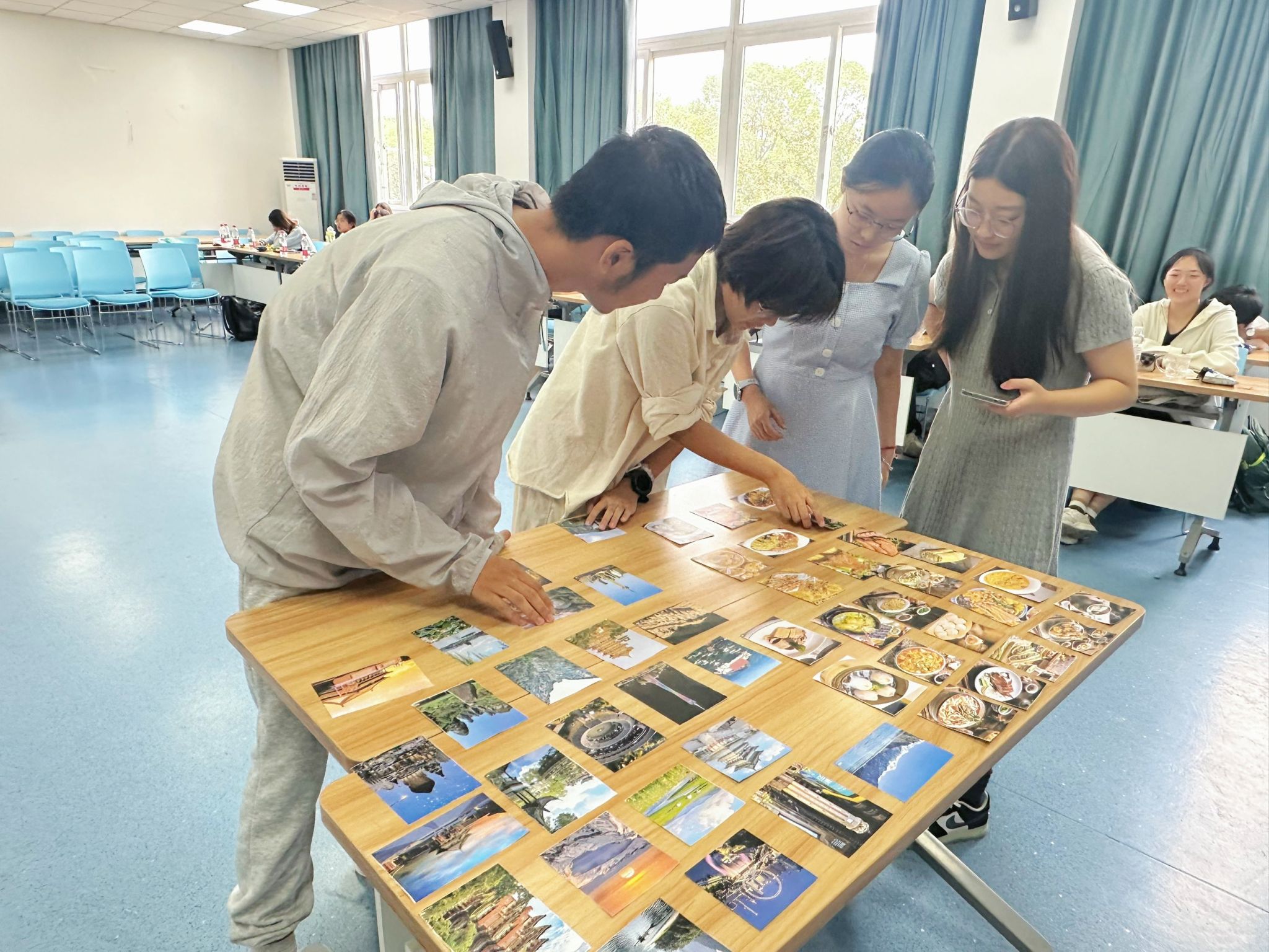 最富有趣味的是“省份拼图”团队协作挑战环节。同学们被分为若干小组,各小组成员需通力合作,将写有省份、地标建筑与民族特色美食的零散卡片进行正确匹配。现场气氛紧张而热烈,队员们热烈讨论着“安徽对应的是黄山还是徽州古建筑?”,最终,率先完成5组正确匹配的小组欢呼雀跃、赢得胜利。该环节寓教于乐,不仅考验了同学们的地理文化知识,更在协作中深化了对祖国辽阔疆域与多元文化的认同感。