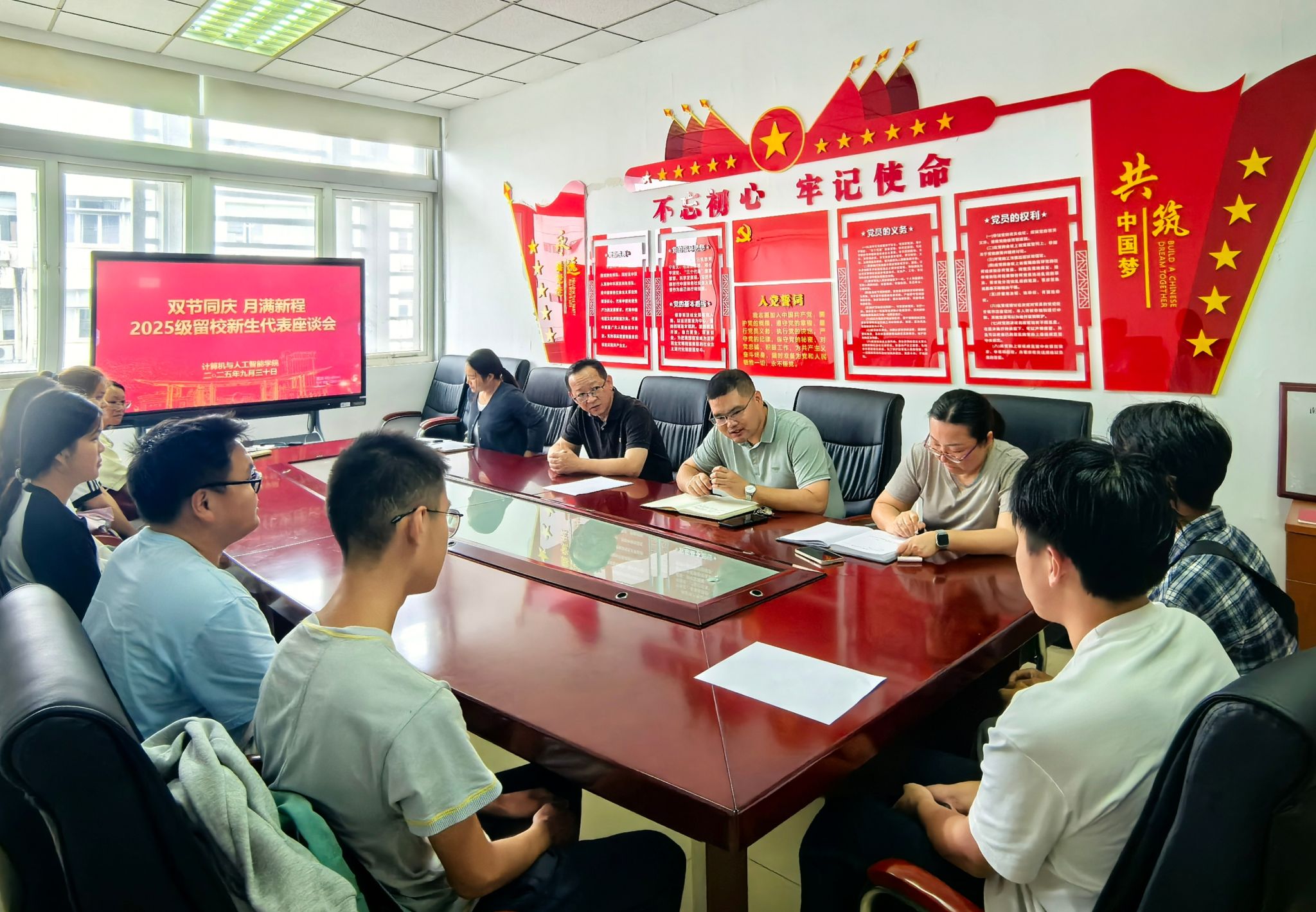举办"双节同庆·月满新程"2025级留校新生代表座谈会。学院党委书记张阳军、党委副书记马健及2025级辅导员与部分留校少数民族新生代表围坐一堂,共话团圆,同迎国庆。