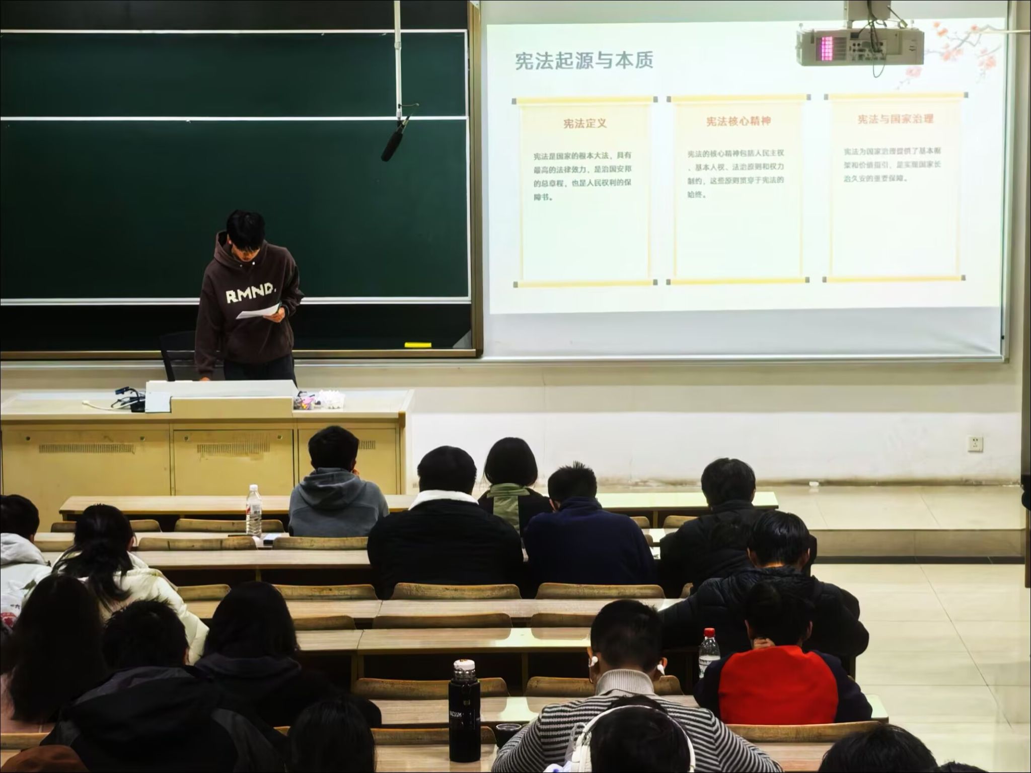 “宪法不是冰冷的条文,而是守护我们成长的‘权利清单’。”主持人的开场白,清晰点明了宪法与青年成长之间的紧密联系。作为青年马克思主义者培养工程的中坚力量,青马班学员深刻认识到:学习宪法不仅是提升法治素养的重要途径,更是坚定制度自信、肩负时代使命的必然要求。本次团课旨在推动宪法精神从文本走向现实,融入青年的思想与生活。