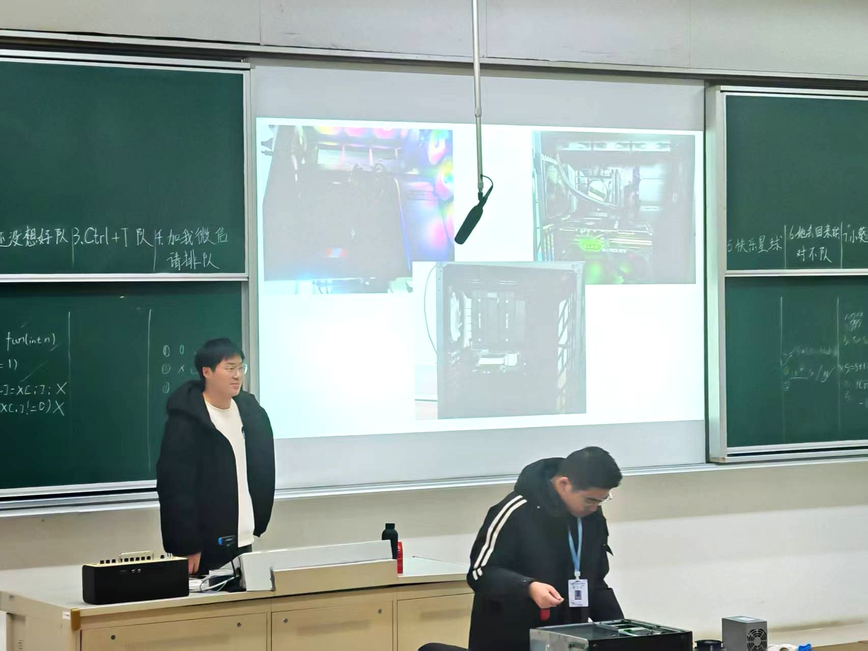 在准备第二组拼装材料的间隙,学院邀请到专攻计算机组装方向的马伟彬学长为我们介绍了许多计算机组装的知识。从显卡的选择、CPU的规格,到专攻大模型方向的魔改卡,学长不仅进行了细致讲解,还现场展示了相关硬件的图片,让大家收获颇丰。