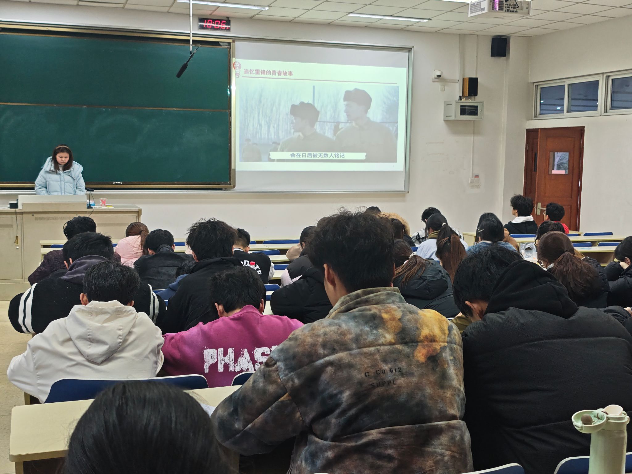 接着,学院分团委宣传部代表作主题分享,从志愿精神的校园实践路径切入,系统阐释雷锋精神与当代志愿精神的内在联系,剖析螺丝钉精神与奉献精神在校园生活中的具体体现。分享内容结合校园志愿服务实际,引导同学们认识到:新时代学雷锋,无需惊天动地的壮举,而在于从身边小事做起,在点滴行动中践行温暖与担当。