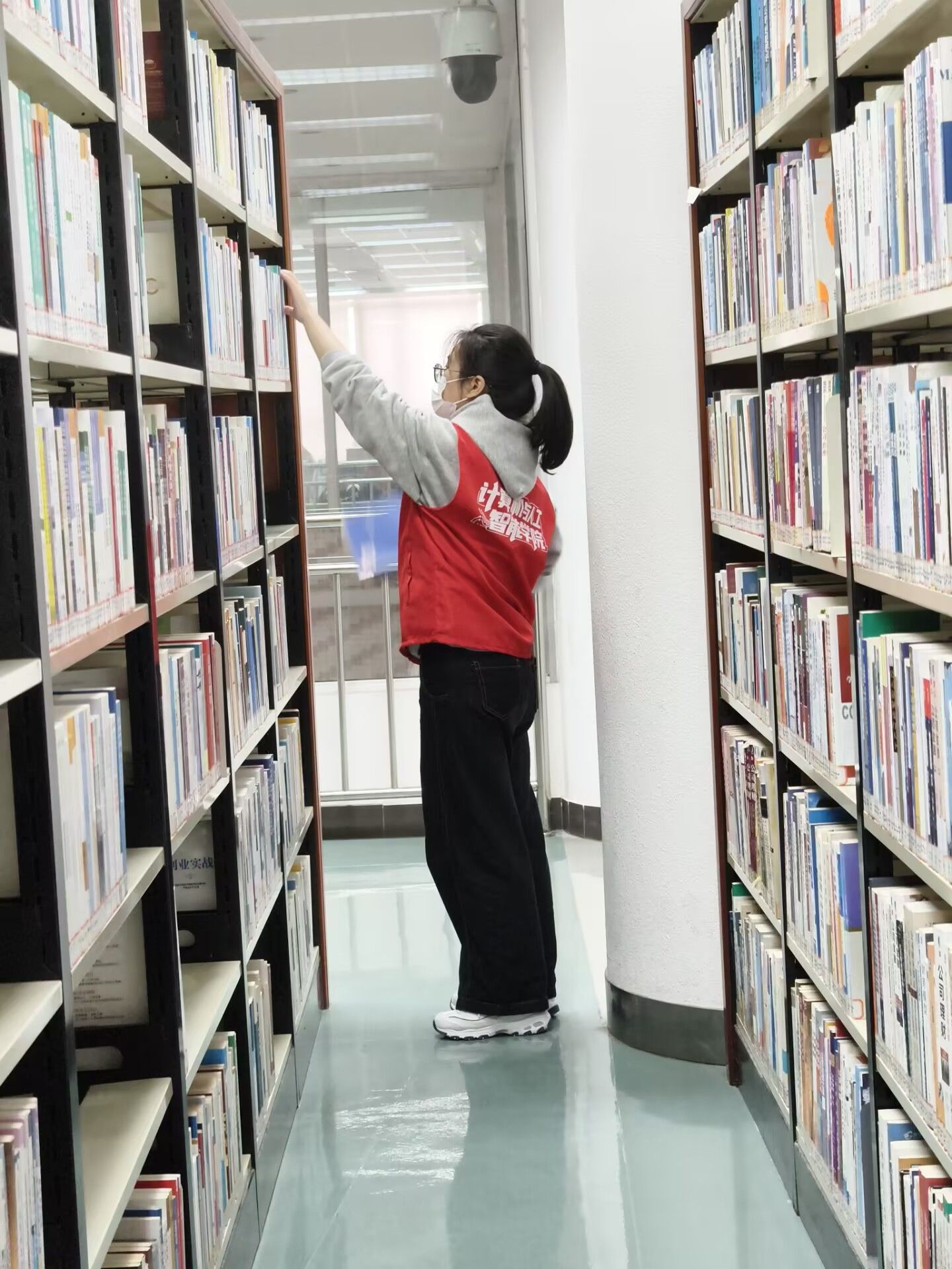 活动现场,志愿者们精神饱满、分工协作,以认真负责的态度投入到图书整理工作中。大家严格按照图书分类法,对乱架、错架、散落的书籍逐一清点、核对编号、分类归位、整齐上架。从细致核对书号到规范摆放书脊,从逐排梳理书架到耐心归置每一本书,志愿者们专注投入、不辞繁琐,用双手让原本杂乱的书架焕然一新,书库秩序明显改善,有效提升了图书流通效率,为全校师生查阅资料、学习研究提供了更加便捷舒适的环境。