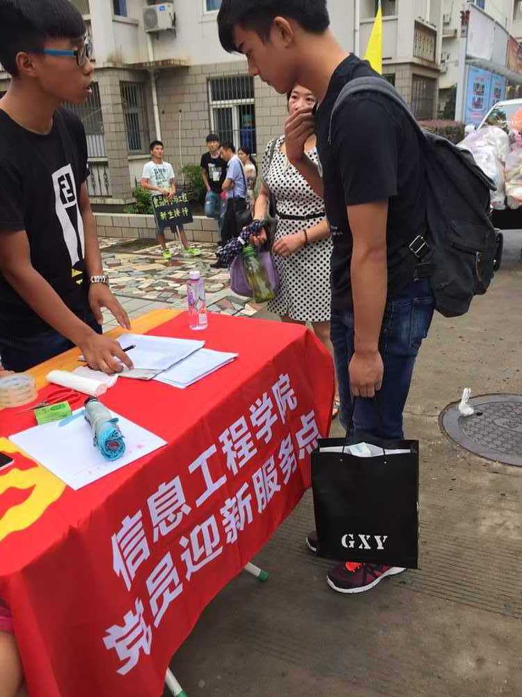 9月5日,是新生报到之日。当日清晨,南财信工院学生党支部分别在北苑和西苑设立了党员迎新服务点,帮助新生解决可能遇到的各种问题。服务的党员守候在宿管站门口,迎接禁漫