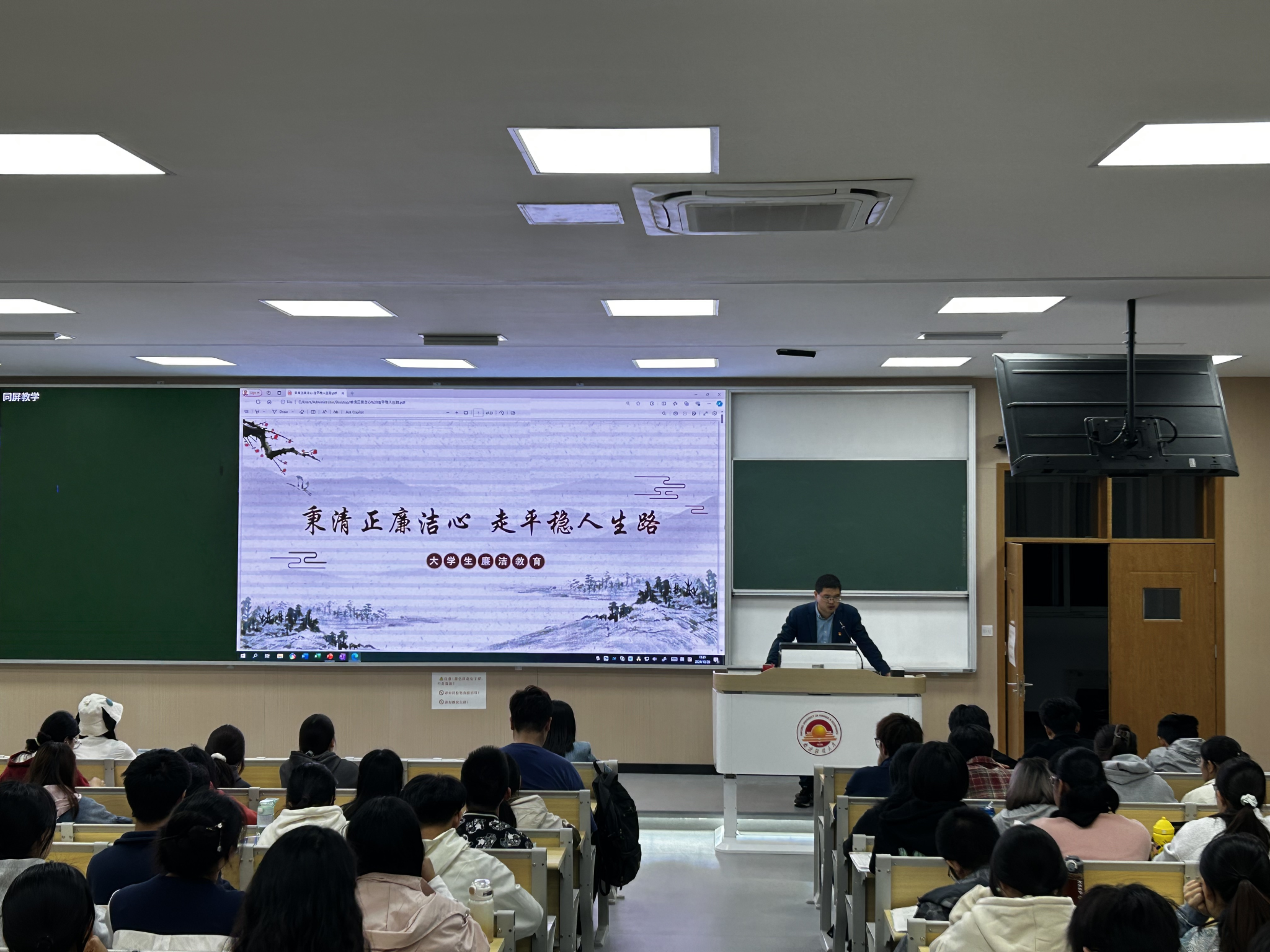 为引导新生树立廉洁观,将廉洁的种子根植于每一位同学心中,10月中旬,信息工程学院党委副书记、纪检委员马健在博观楼202教室为24级全体本科生讲授廉洁教育专题思政课。