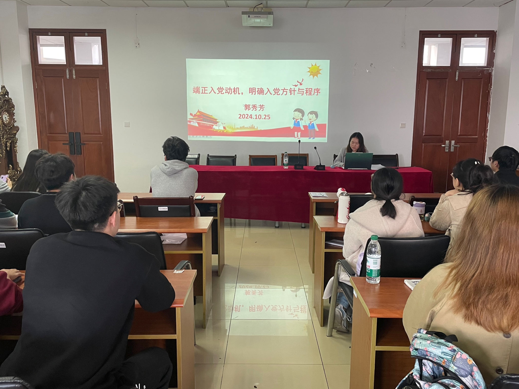 为扎实做好新时代党员发展和教育工作,打好入党的思想基础理论基础,把好党员队伍“入口关”“质量关”,全面提高党的发展对象政治素质、思想素质, 10月17日-10月31日,信息工程学院分党校在德业楼406教室组织开展了2024年下半年党的发展对象培训班,学院本科生、研究生共30人参加此次培训。