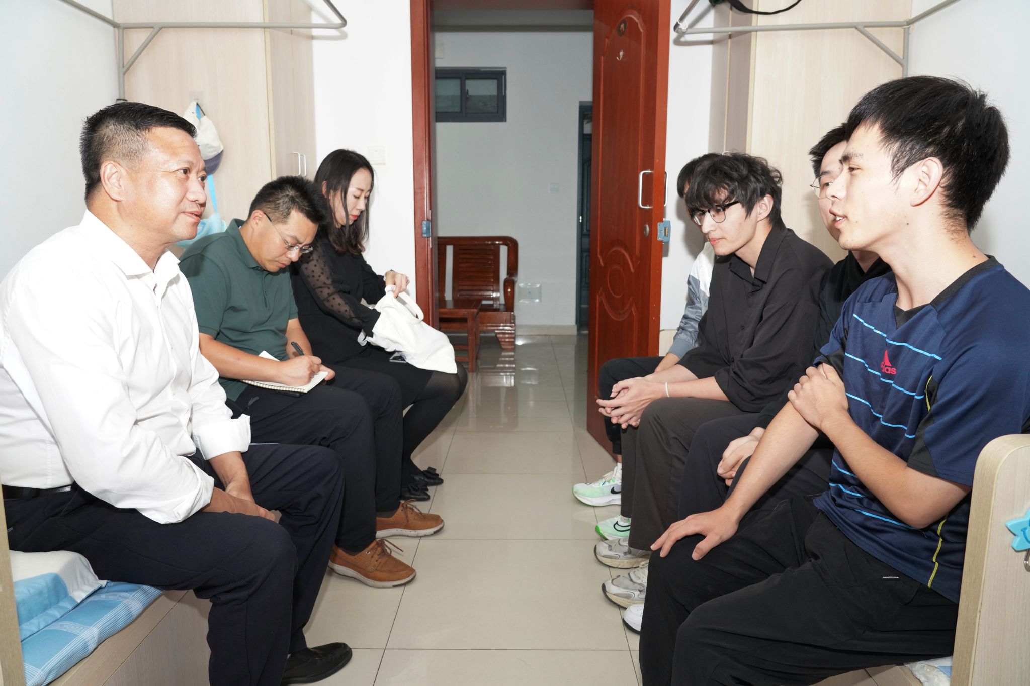 在学生宿舍,张利民书记与同学们热情交流,详细了解新学期开学以来同学们在学习、生活、科研等方面的情况以及遇到的困难,认真听取同学们对于专业学习、科研竞赛、宿舍生活、环境管理等方面的建议,对同学们提出的问题进行了细致解答,并要求相关部门密切关注、及时解决同学们的合理诉求。同学们纷纷表示,近年来学校在民生工程方面的建设力度大、成效显著,特别是食堂、宿舍、运动场等维修改造切实提升了学生的校园学习生活品质。张利民书记鼓励同学们要勇于担当时代赋予的重任,做好学业和职业规划,全身心投入到学习研究和创新实践中去,全面提升综合素质以更好地与国家需求、社会发展、科技创新相匹配。同时要利用学校丰富的场馆资源,积极参与体育锻炼,强身健体,养成健康的学习生活习惯。