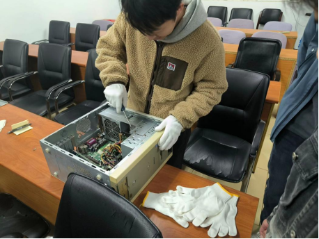 复赛环节,比赛进入实战阶段,分为电脑报错诊查与修复、电脑拆卸与重装两个部分。第一组由组织委员魏俊宇同学负责,他为同学们详细介绍了活动情况与现有问题,并提供了技术支持。第二组则考验了同学们的动手能力,各小组迅速展开了DIY工作。最终,第五组以90/100的高分在电脑拆卸与重装环节中拔得头筹,展现了他们精湛的技艺和团队协作能力。